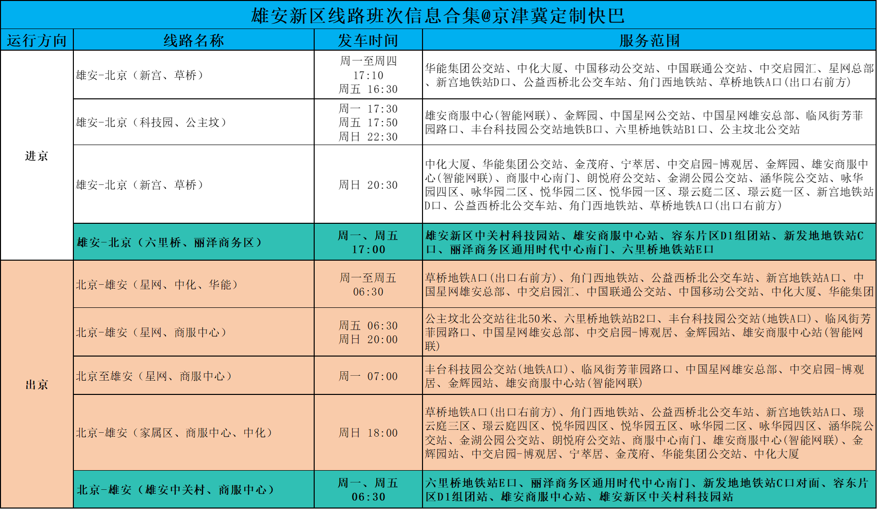 △北京⇌雄安新区线路班次合集